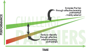 It’s the same for schools in Challenge Partners, charting a path to better performance that isn’t linear, but shows steady and sustained progress over time. And they do it not at the expense of the schools they collaborate with in the network, but because of and alongside them. We call this upwards convergence. It’s what Challenge Partners is all about.